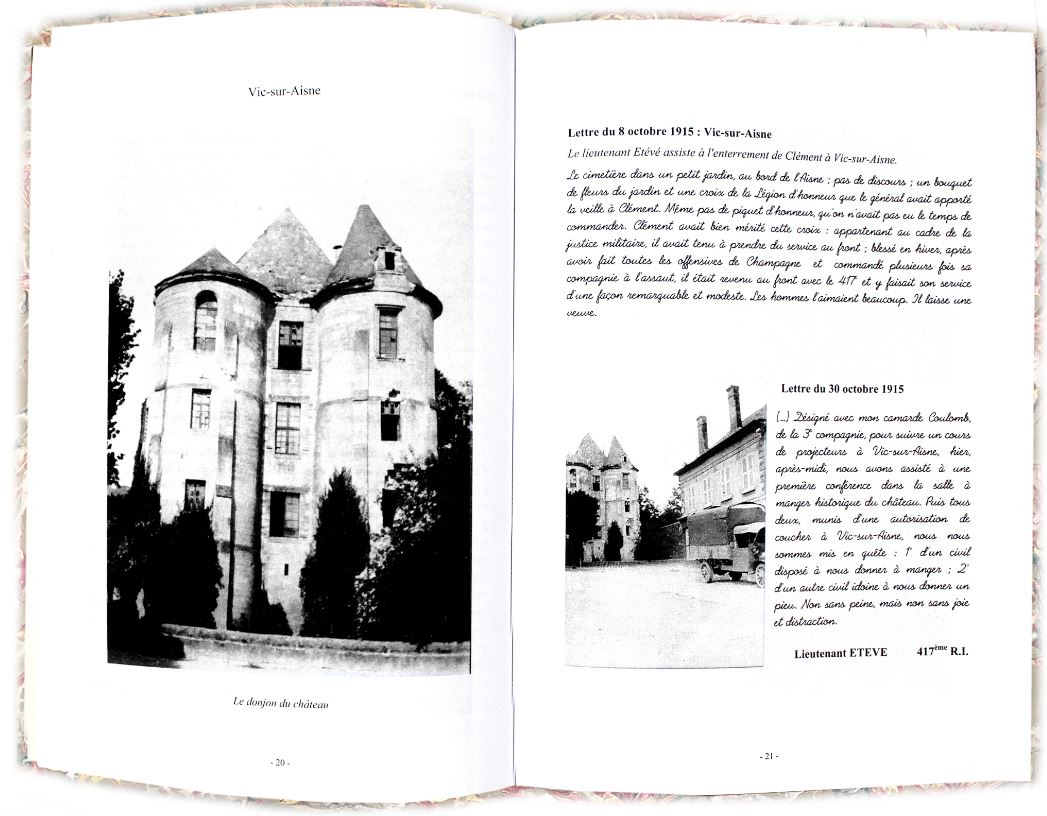 Publication de Laurent Sicard (1894-1941) d’origine toulousaine part aux armées pendant la Première Guerre Mondiale dans le 417e R.I., le 1er avril 1915. Nommé médecin dans le 35e corps armée, il a laissé une intéressante production photographique concernant la vie des soldats pendant le conflit dans notre région entre avril 1915 et avril 1916. Cette œuvre a été le sujet d’une exposition par le croisement des écrits d’autres soldats comme le Lieutenant Etévé du 417e R.I. dans le donjon de Vic-sur-Aisne en novembre 2000.